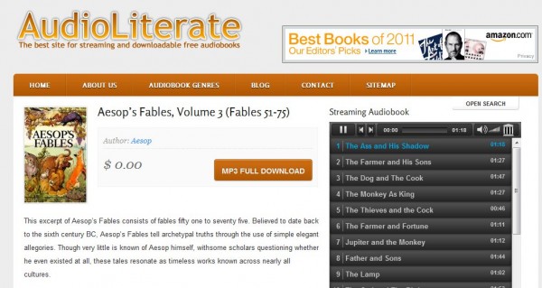 audioliterate.com ofereix una forma molt interessant de gaudir de narracions de diverses obres escrites en diverses parts del món, sent un treball realitzat per voluntaris i disponible de forma gratuïta a la seva web, tant per baixar en mp3 com per escoltar directament des del web.