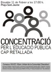 Els sotasignants REAFIRMEM el nostre compromís amb l’educació pública i aquesta tarda volem FER UNA CRIDA a tota la ciutadania de Catalunya a implicar-se activament en la DEFENSA I EN LA PROMOCIÓ de l’educació pública i a NO PERMETRE cap mesura que pugui suposar la pèrdua de qualitat de l’educació pública.