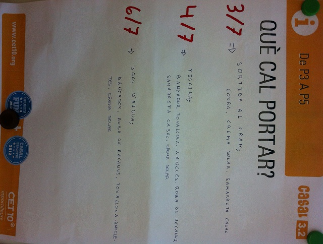 6 juliol: Jocs d’aigua –> Banyador, tovallola, xancles, roba de recanvi, crema protecció solar.