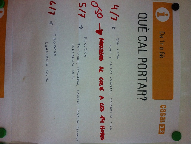 ACTIVITATS I SORTIDES PROGRAMADES, QUE CAL PORTAR?: