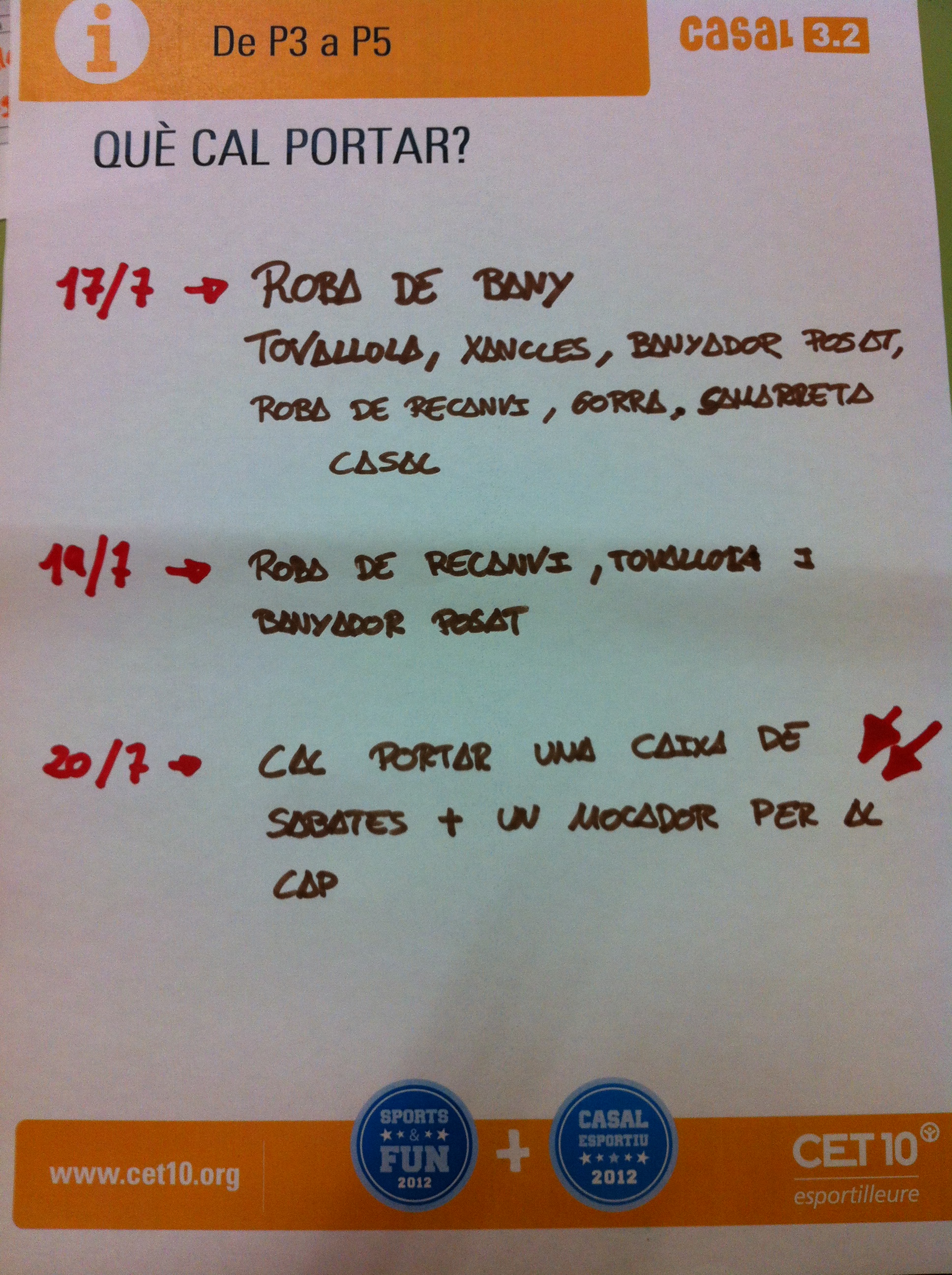 Qué cal portar?: Roba de bany, banyador posat, tovallola, xancles, roba de recanvi, gorra, samarreta de casal i crema protecció solar.