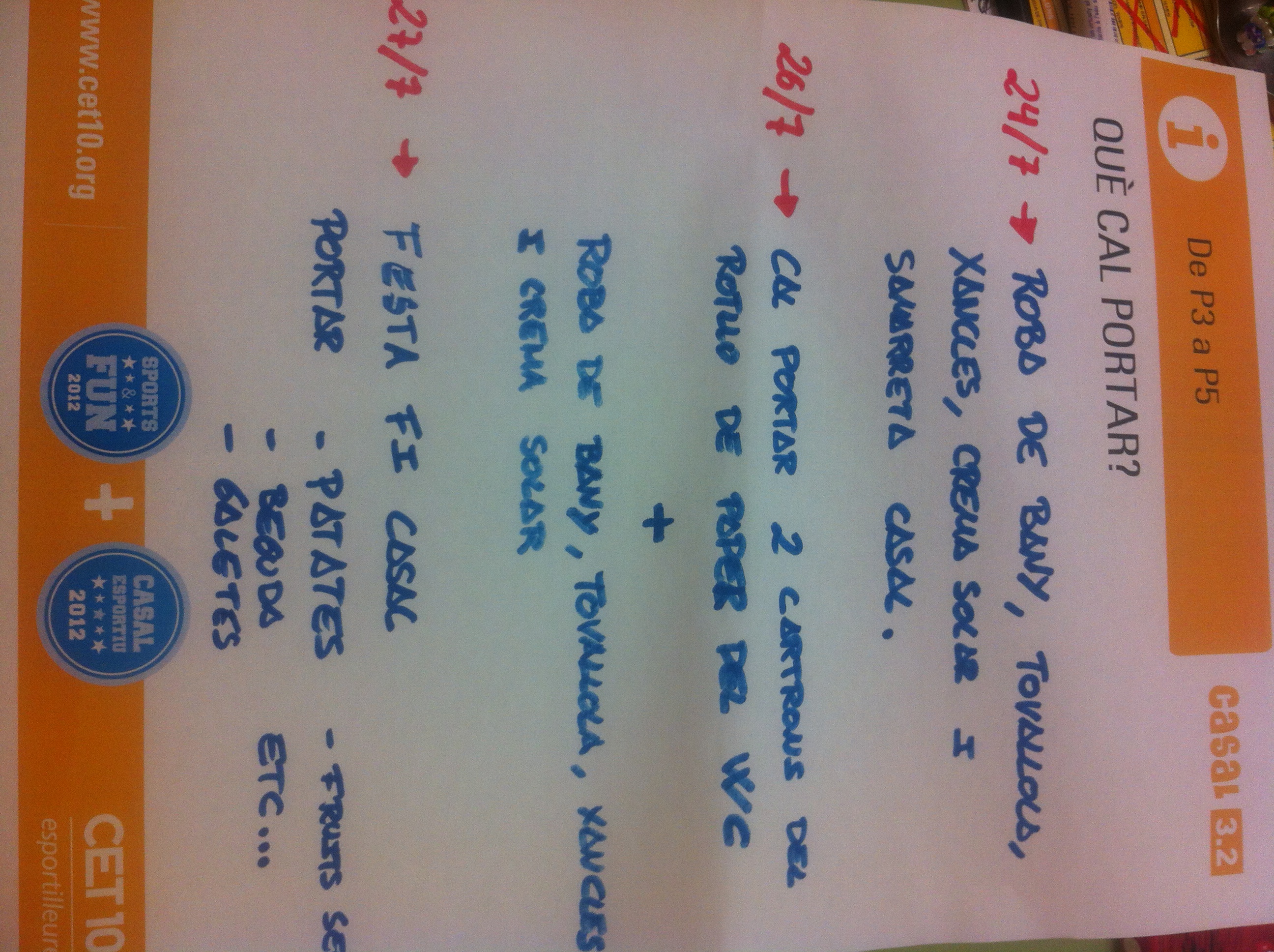 Educació Infantil (P3, P4 i P5), Qué cal portar?:
