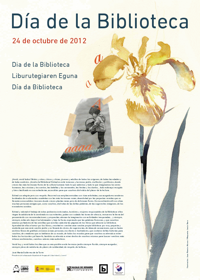 ¡Venid a la Biblioteca! Entrad en este inmenso y hermoso jardín, multicolor y polifónico, donde crecen las más hermosas flores de la cultura humana: todo lo que sabemos y todo lo que imaginamos los seres humanos, las crónicas y los sueños, las batallas y los carnavales, las fiestas y los duelos… todo está aquí recogido y bien clasificado en sus estanterías, accesibles para que vosotros disfrutéis del placer de la lectura.
