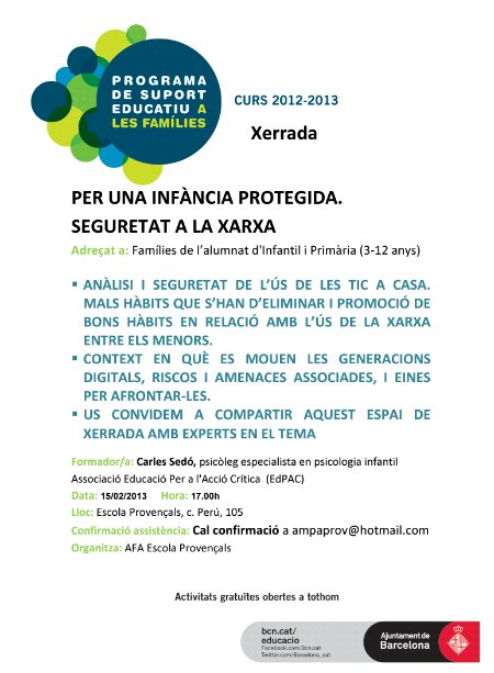 Propera Xerrada al Provençals: Per una infància protegida. Seguretat a la xarxa