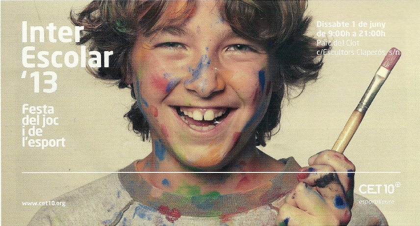 Activitats en família, Bàsquet, Comissió CET10, Extraescolars, Gimnàstica Rítmica, Iniciació Esportiva, Patinatge ArtísticInterescolar 2013 – CET10 – 1 de juny El festival Interescolar és un event molt consolidat dins el districte de Sant Martí. El Interescolar és la unió de diferents festivals esportius escolars que es cel·lebren conjuntament al Parc del Clot durant el 1 de juny. Share this: | Comparteix:Comparteix Feu clic per imprimir (S'obre en una nova finestra) Imprimeix Feu clic per compartir a X (S'obre en una nova finestra) X Feu clic per compartir al Facebook (S'obre en una nova finestra) Facebook Feu clic per compartir al Tumblr (S'obre en una nova finestra) Tumblr Feu clic per compartir al Pinterest (S'obre en una nova finestra) Pinterest Feu clic per enviar un enllaç per correu electrònic a un amic (S'obre en una nova finestra) Correu electrònic M'agrada S'està carregant... Relacionats