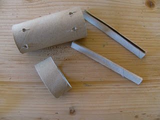 Escurçar un tub uns pocs centímetres, a continuació, fer dues petites obertures en els extrems de les potes – les tisores d’ungles són excel·lents per això – i empènyer una de les peces doblegades de la targeta a través d’un forat i baixar per l’altre. (Millor si els forats estan bastant a prop – massa lluny i la vostre girafa es veurà sense cames …) Repetiu en l’altre extrem i aquest és el cos i les cames fetes.