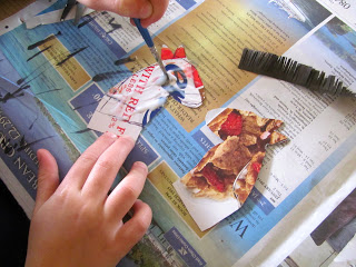 Posa cola sobre un costat d’una de les peces del cap, enganxa la cabellera cap avall. Deixeu assecar amb una mica de pes a sobre i quan estigui llest, dibuixeu una cara.