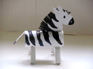 Una vegada que aquests estan secs, dibuixeu la forma del cap del cavall a la part posterior (pel costat sense pintar) del paquet de cereals, i recordeu fer les línies de sota, a la part inferior del coll, per uns pocs cms – per poder encaixar el coll en el cos del tub.