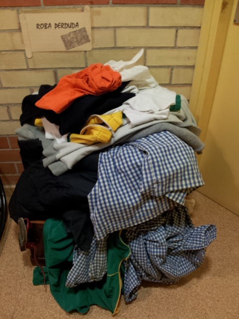 Si trobeu a faltar alguna jaqueta o altra peça de roba, reviseu la capsa de Roba Perduda que tenim al costat del despatx del Coordinador d’extraescolars.