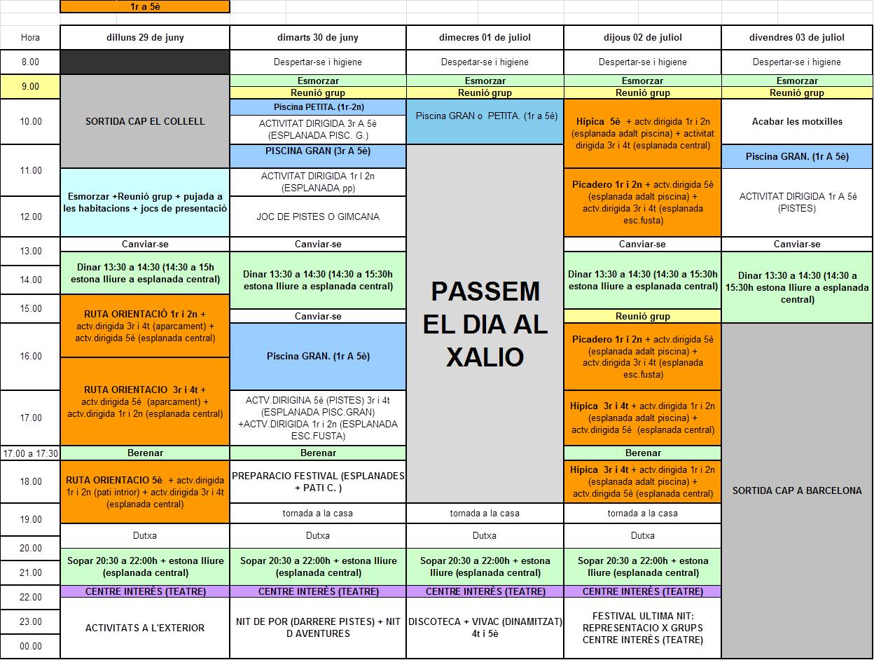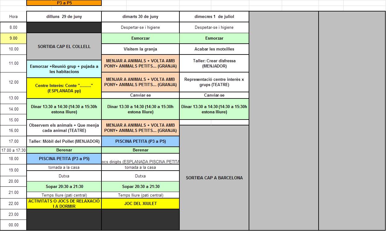 Comissió de Casals i ColòniesColònies: Detall Activitats Aquí teniu el detall de les activitats que estan realtzant els alumnes durant les colònies a El Collell. P3-P4-P5 1r-2n-3r-4t-5è M'agrada S'està carregant... Relacionats